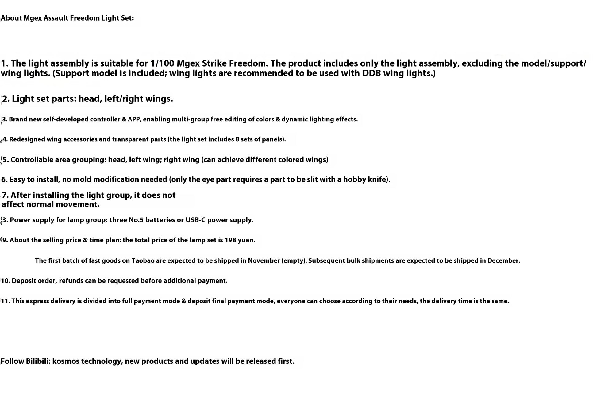 Kosmos 1/100 MGEX Aile Strike Freedom RGB Kit - Multicolor LED Lighting for 1/100 MGEX